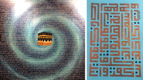2022 senesinde Bienal vasıtasıyla Barın Han’ı ziyaret etmiştim. Hat ve cilt sanatçısı Emin Barın’ın eserlerini ilk kez orada gördüm. Emin Barın, Türkiye’de hat sanatının akademik anlamda ilerlemesini sağlamış ve nice öğrenci yetiştirmiş çok değerli bir profesör. Kendisi, Kûfi sanatını Latin harflere geçiren bir üstat. Mart 2024 senesinde Feshane’deki sergisinde bir kez daha görme şansını yakalayınca Kûfi’ye olan merakım iyice arttı.
