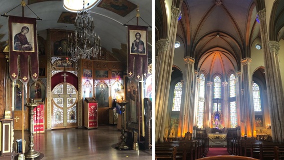 Tahsin ve Kemankeş caddeleri arasında bulunan “Aya Andrea” ile Aya Panteleymon kiliseleri, 130 yıldır birçok ülkeden gelen farklı milletlerden Ortodokslara ibadet için kapılarını açıyor.