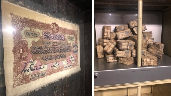 Müzede kasaları gezebiliyorsunuz. 1880 tarihli 1 liralık banknotta Türkçe, Fransızca, Rumca ve Ermenice olmak üzere dört ayrı dilde mühür bulunuyor.