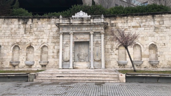 Bezmialem Valide Sultan, çeşmenin karşı tarafındaki Maçka Meydanı Sokağı’nın köşesine gömülmüş. Türbesine bir de namazgâh konmuş.